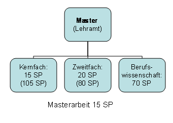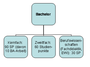 Gemäß den Vorgaben des Berliner Lehrerbildungsgesetzes ist ein einschlägiger Bachelor-Studiengang in drei Teile gegliedert, das Kernfach (90 Studienpunkte), das Zweitfach (60 Studienpunkte) sowie die Berufswissenschaften, also Erziehungswissenschaften, Fachdidaktik (30 Studienpunkte). In der MA-Phase soll dann vice versa das Zweitfach aufgewertet werden, so dass das Ungleichgewicht insgesamt deutlich geringer wird, ebenso sollen Berufswissenschaften einen erheblich größeren Stellenwert erhalten. Das können die beiden folgenden Schemata verdeutlichen: