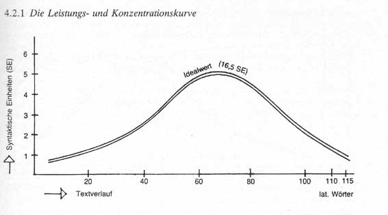 Sie steigt bis etwa zum Ende des zweiten Drittels der Arbeitszeit an und sinkt danach stetig ab. Daraus folgt v.a., dass der Einstieg in den Text möglichst einfach sein sollte und dass sich die Schwierigkeiten nicht ausgerechnet im letzten Drittel der Arbeitszeit häufen sollten.